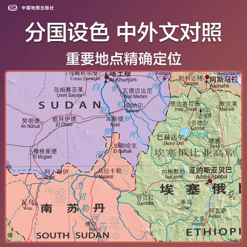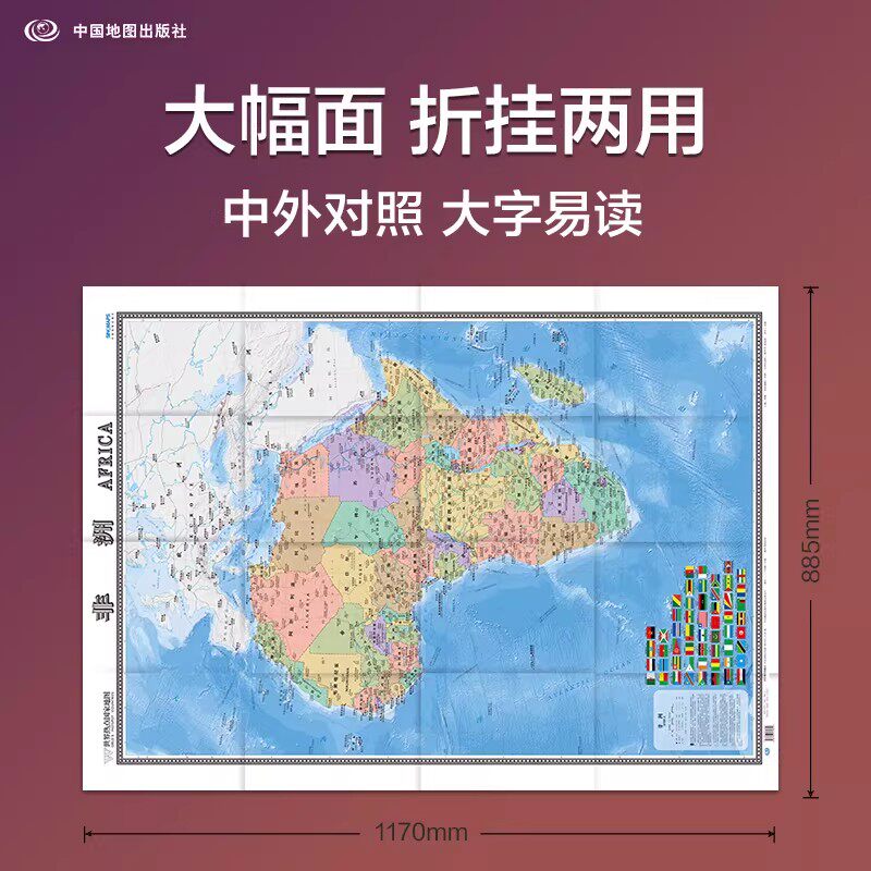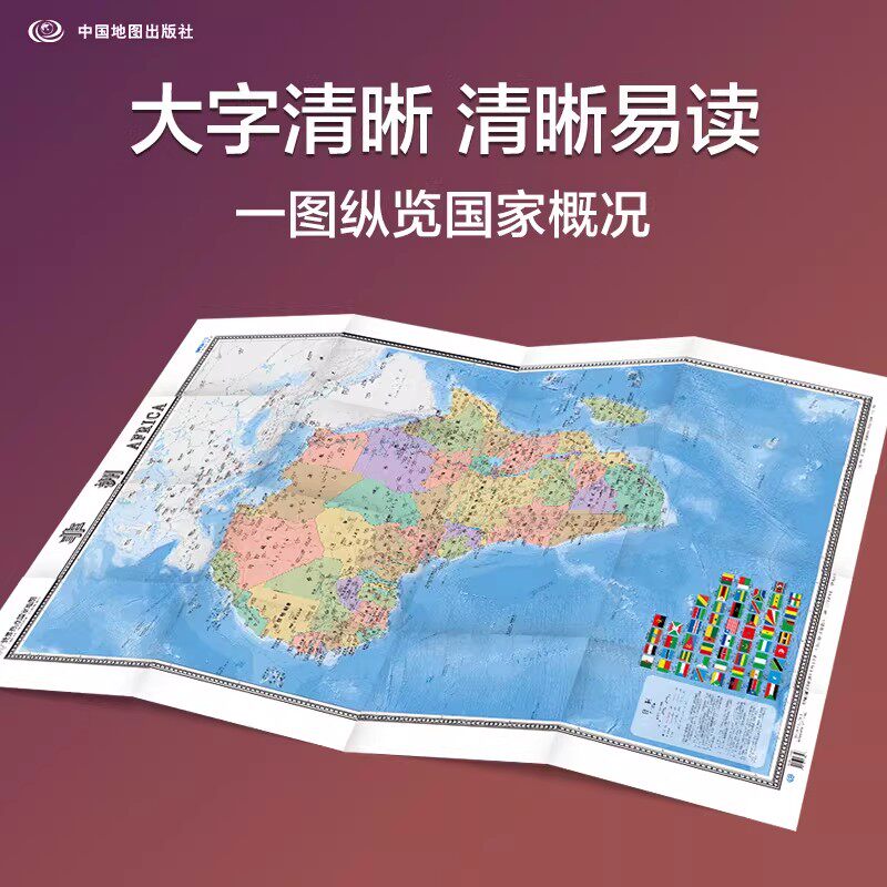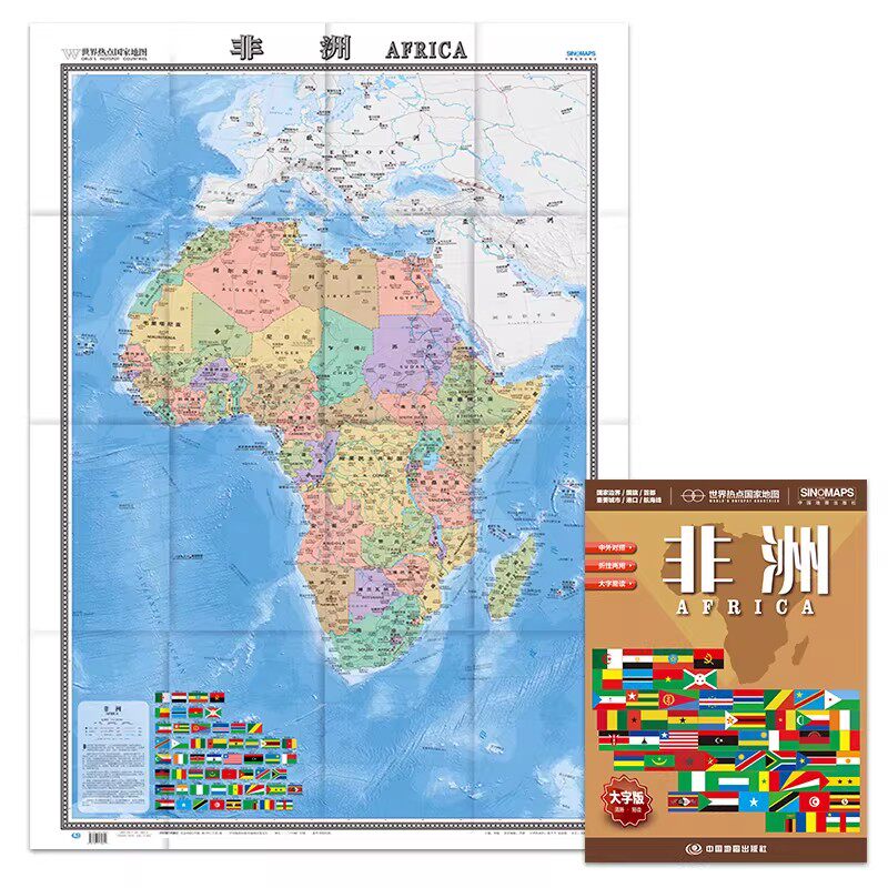 2026非洲地图大张 1.17米x0.86米 国家边界港口航海线首都 地图汇集人文地理风情 交通 地形地势 国家介绍