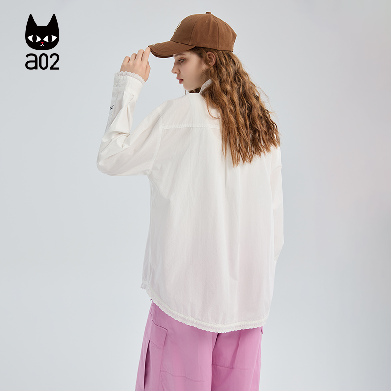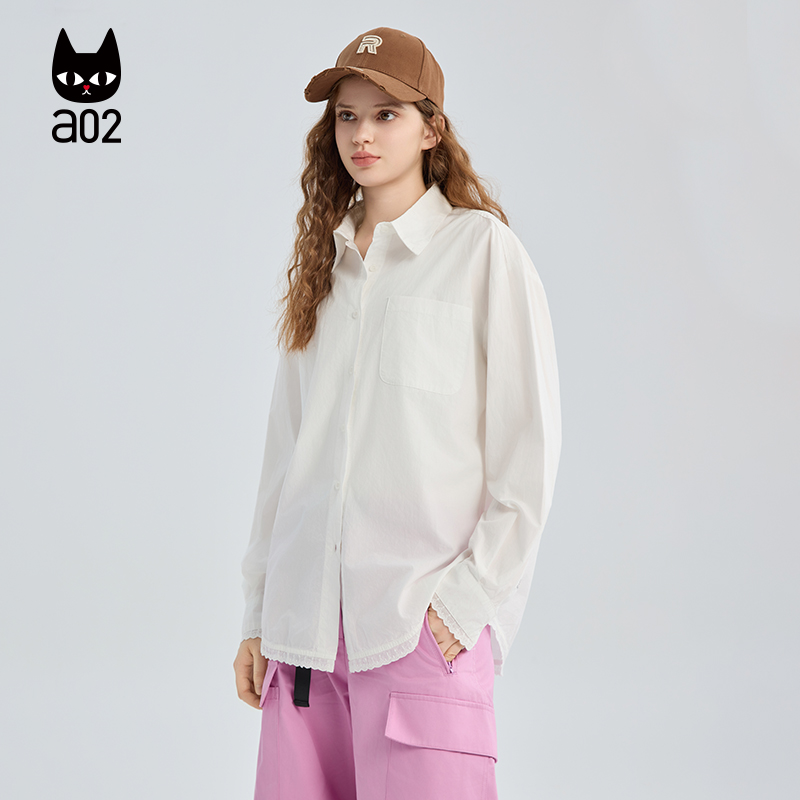 a02蕾丝花边宽松白衬衫女2025新款秋季甜美风衬衣设计感秋装上衣