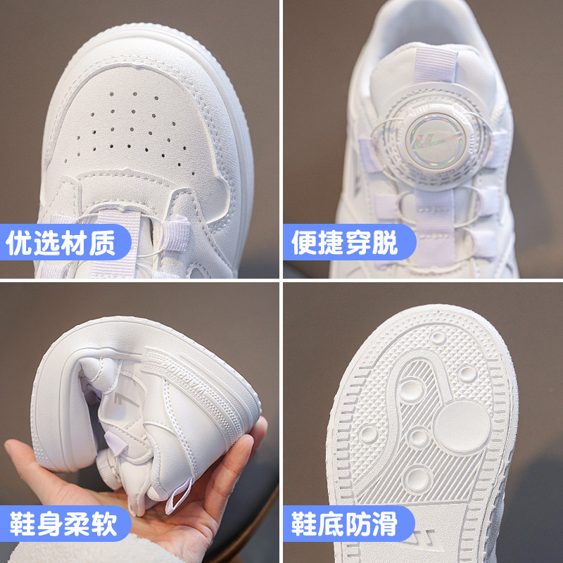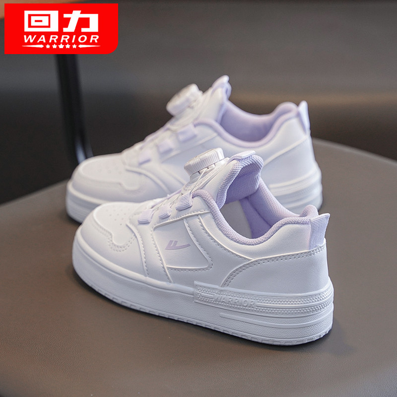 回力女童小白鞋儿童鞋子2026春秋新款全白板鞋小学生旋转扣运动鞋