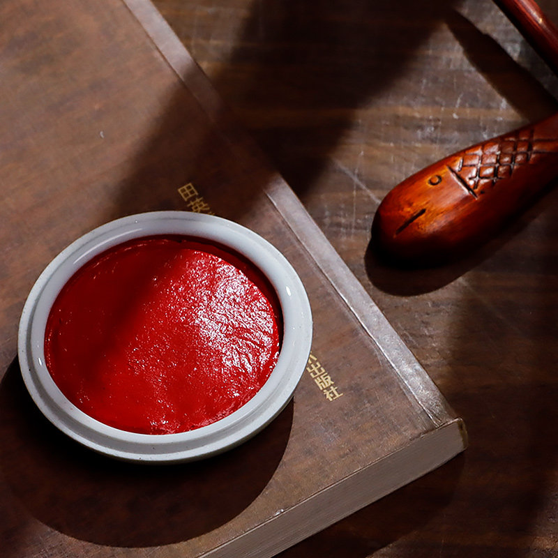 朱砂印泥书画专用印尼盖章书法篆刻朱膘朱磦金色银色印油金印泥高级镜面朱砂印台印章泥送大号陶瓷印泥盒
