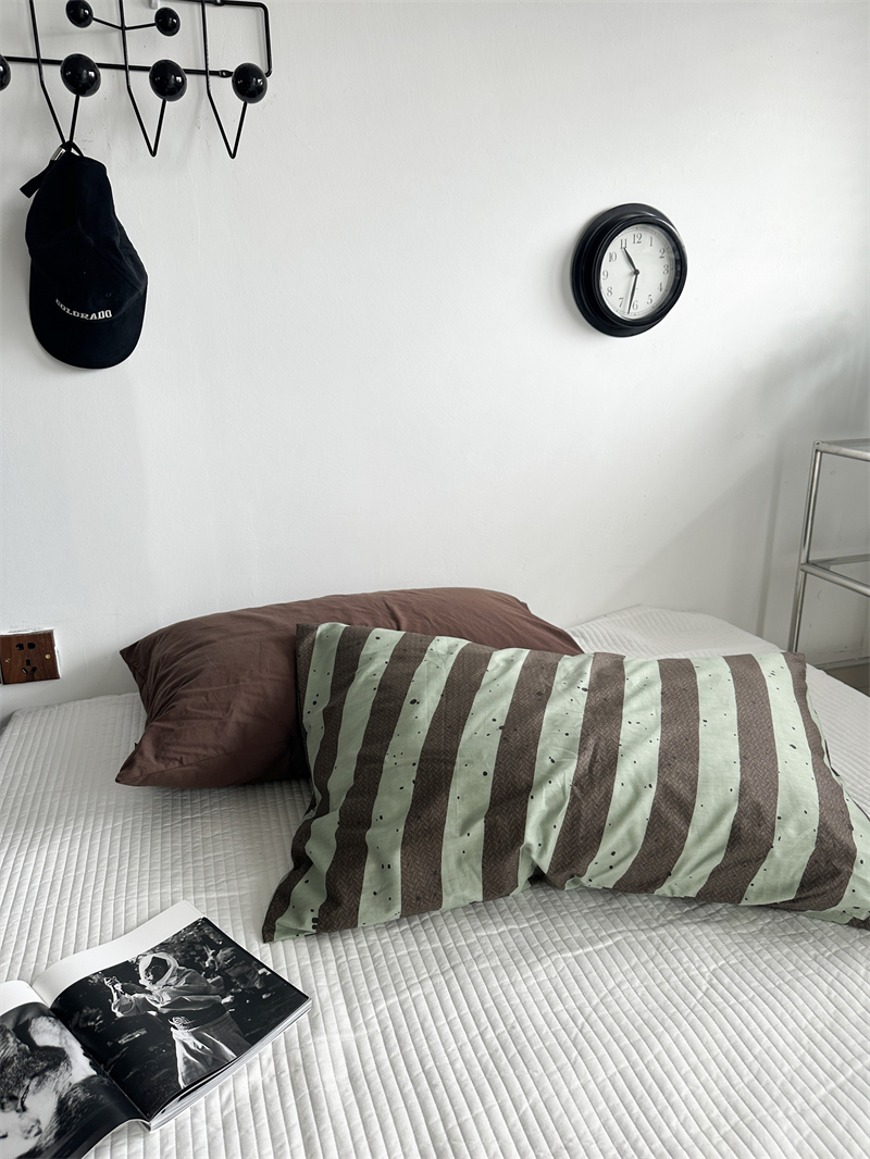 梨梦 【枕套单品】ins简约条纹枕套纯棉枕头套单件全棉枕套一对装