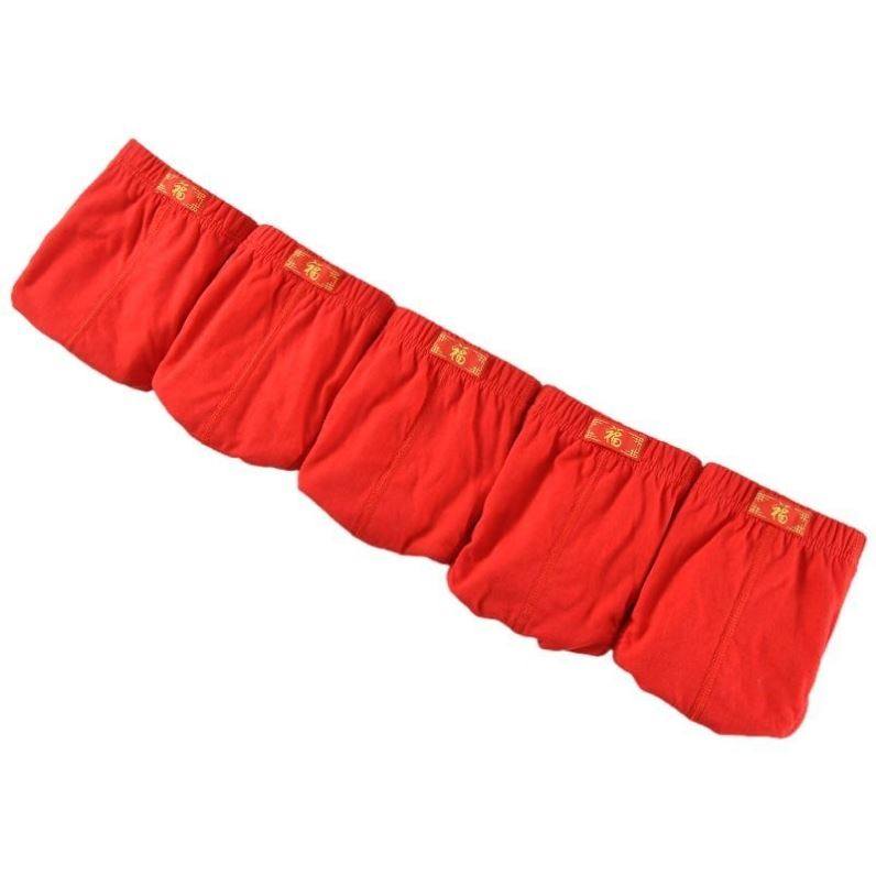 内裤男全棉本命年大红福字男士内裤中腰三角纯棉男式红色大码短裤