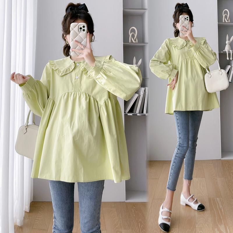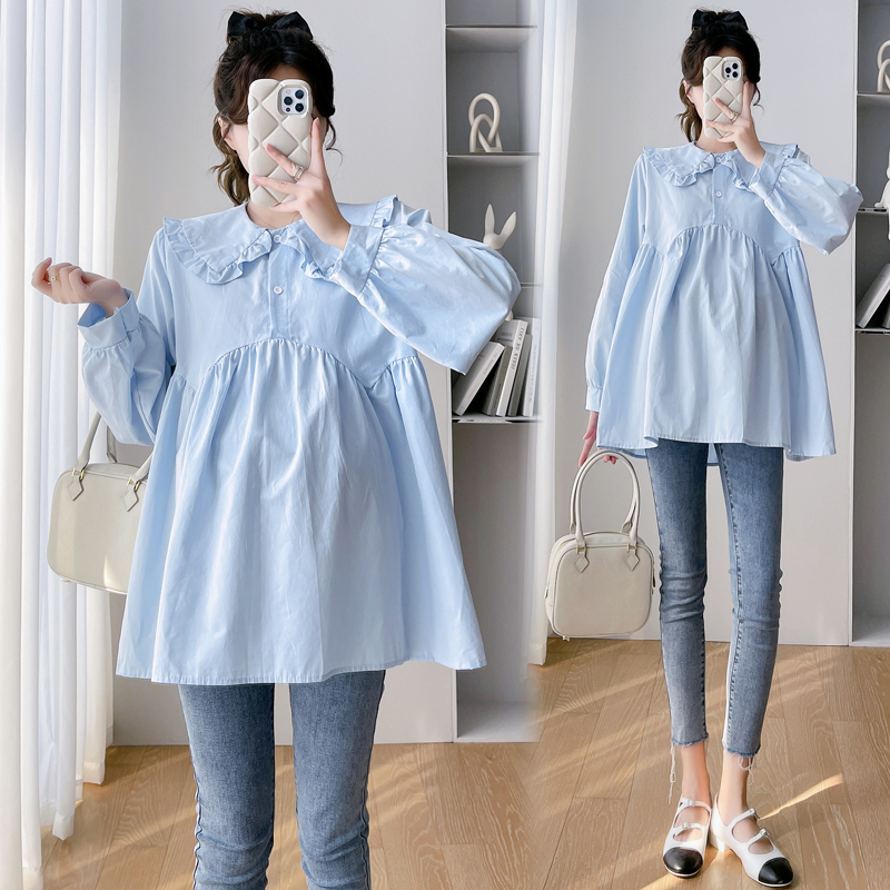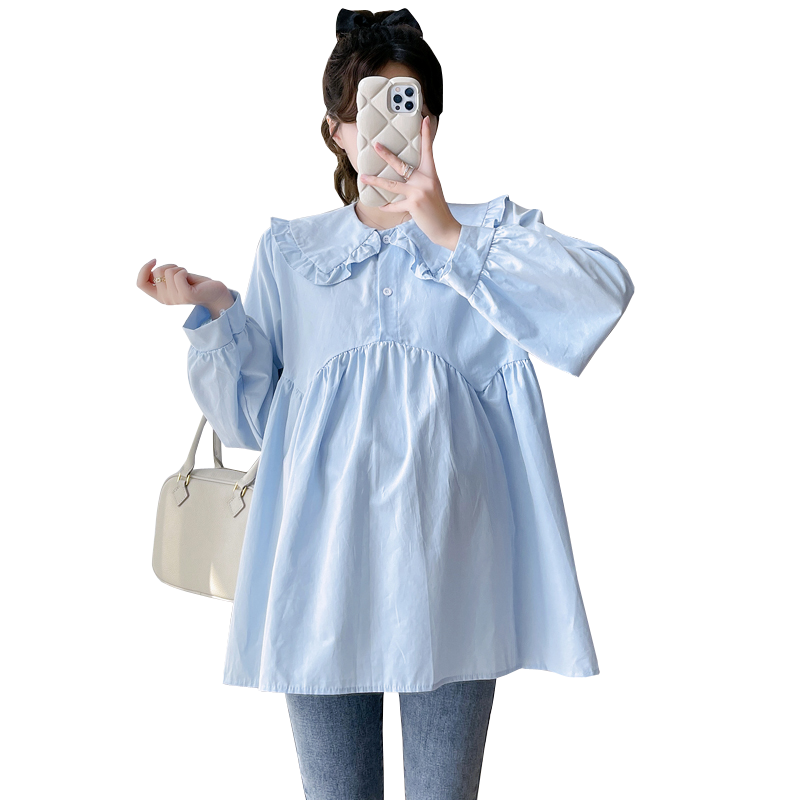 大码孕妇装衬衫2025春秋新款甜美气质娃娃领遮肚宽松上衣女200斤