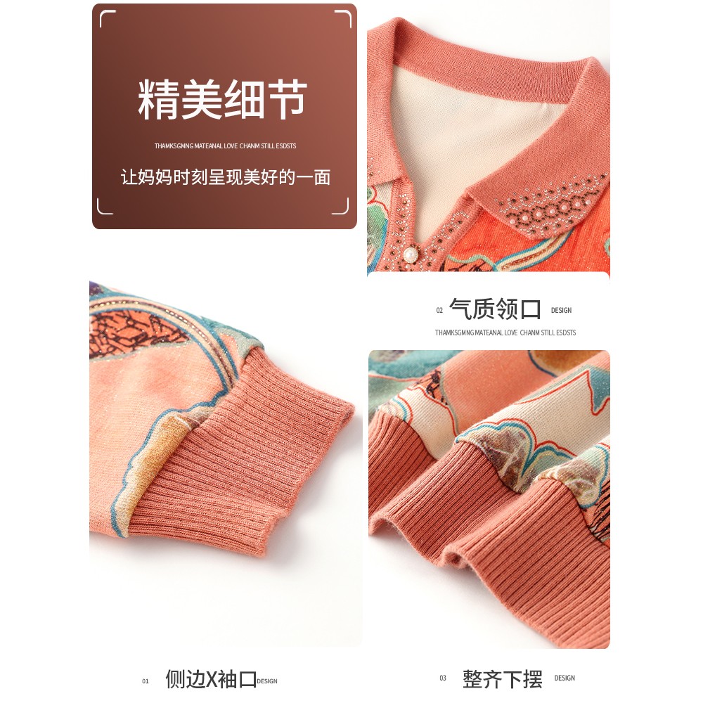 中年妈妈秋装2025新款翻领上衣洋气中老年女装长袖打底衫套装大码