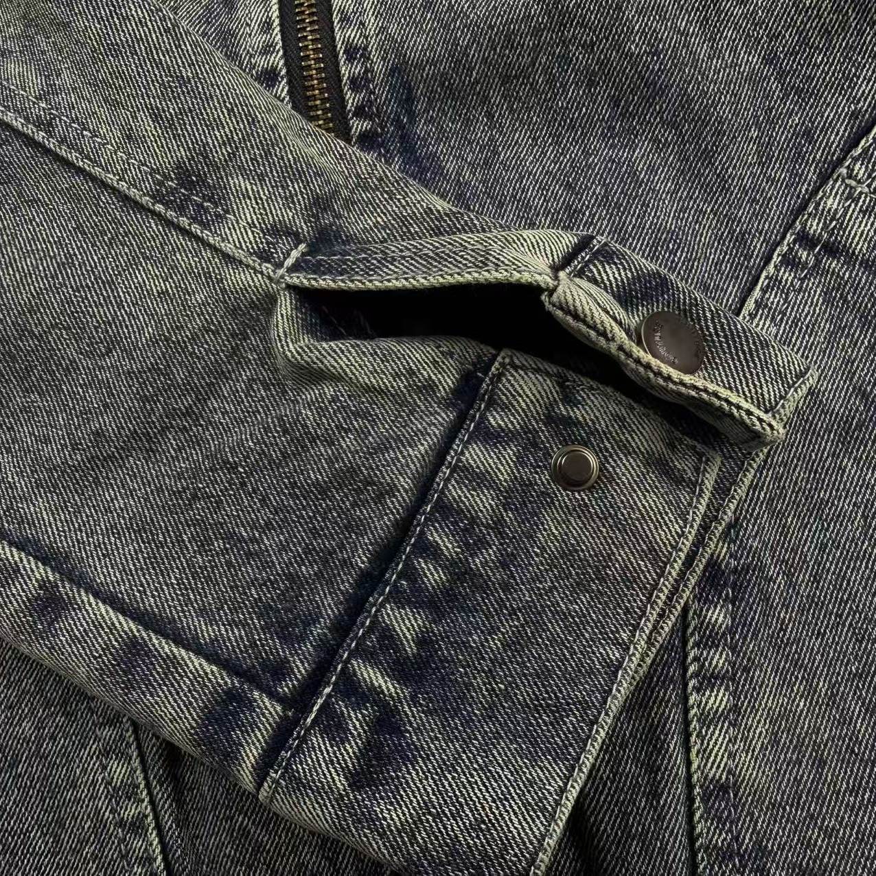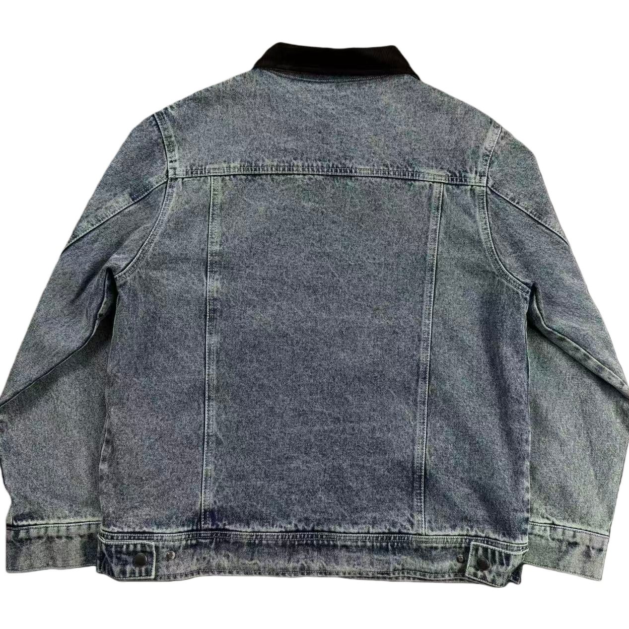 美式底特律做旧灯芯绒拼接牛仔衣