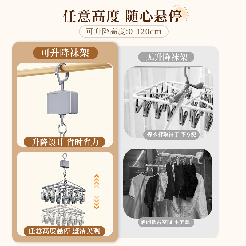 升降晾袜架阳台悬停晾衣架升降器可升降袜子晾晒架内衣裤晾衣神器
