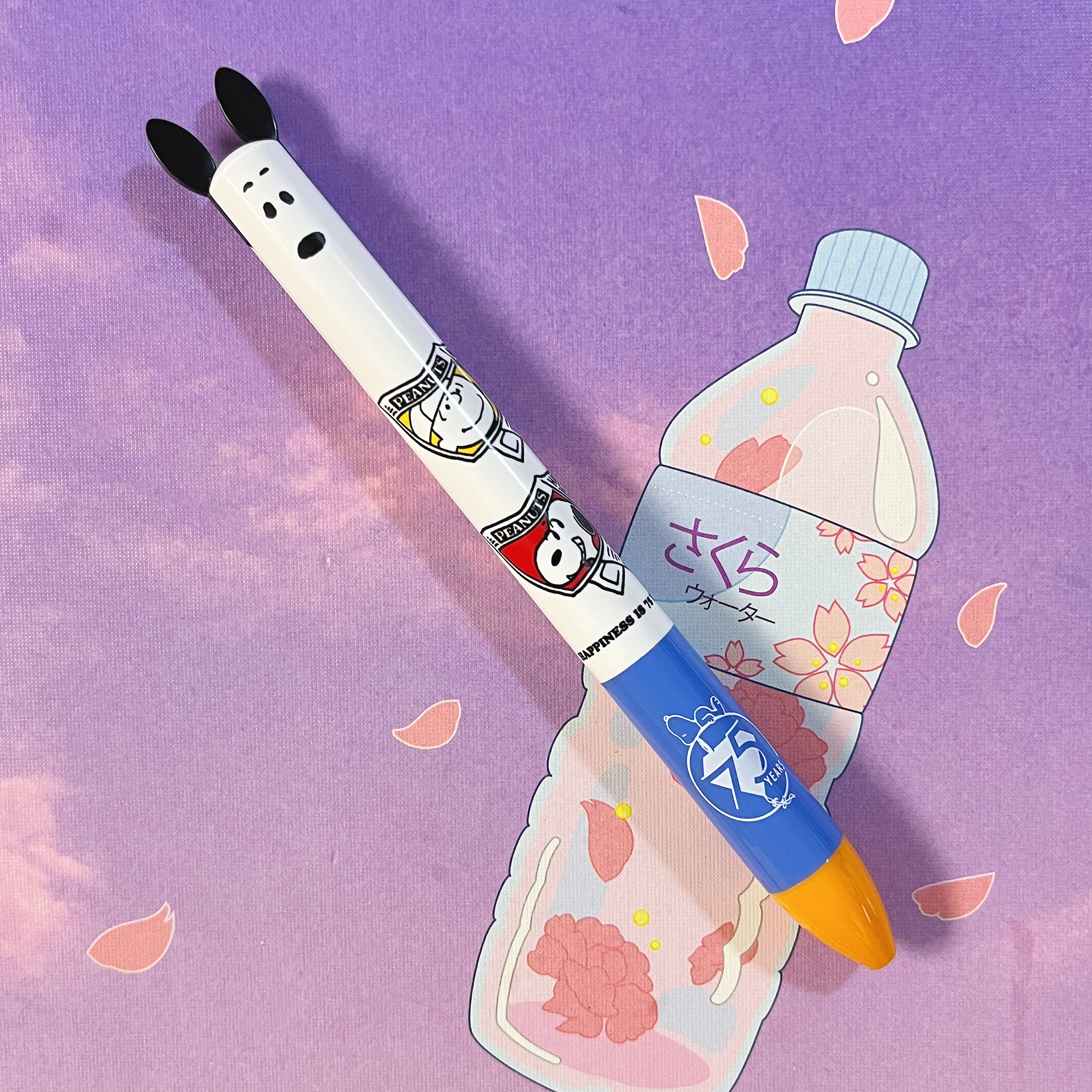 现货日本snoppy新款史努比限定75周年mini迷你双色耳朵笔圆珠笔