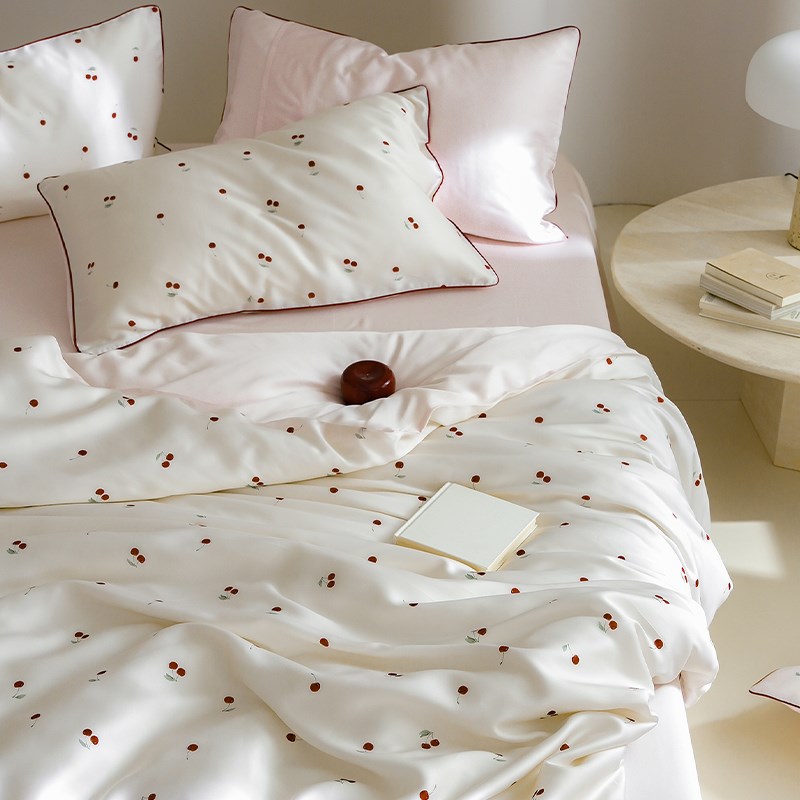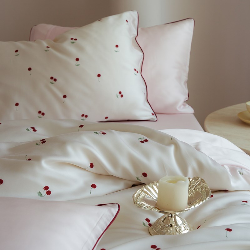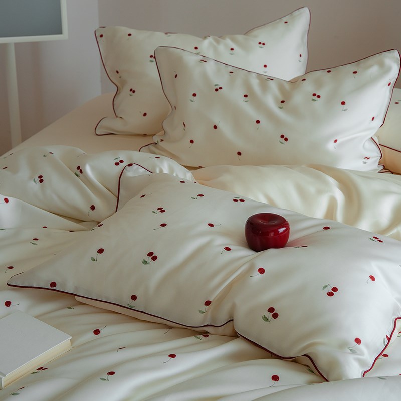 春夏季少女心樱桃兰精天丝凉感床上四件套 M冰丝床单被套女生套件