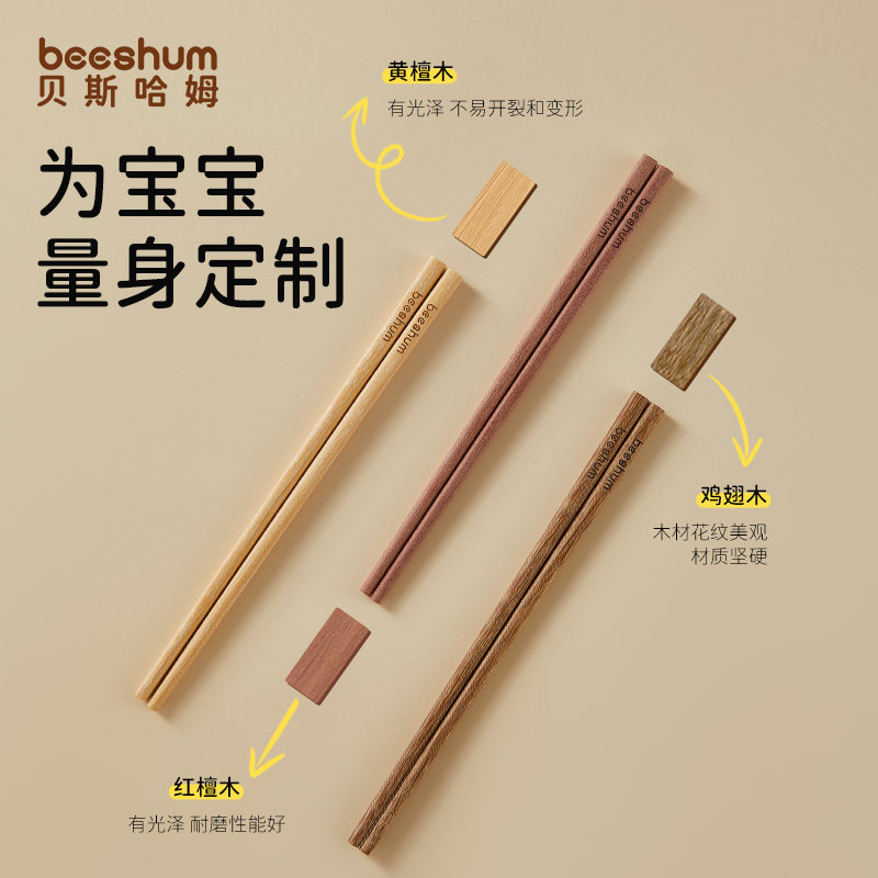 beeshum宝宝训练筷实木无漆无蜡