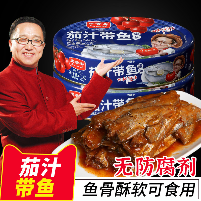 庞香斋茄汁带鱼401g开罐即食五香鱼肉罐头下饭酒菜红烧海鲜熟零食