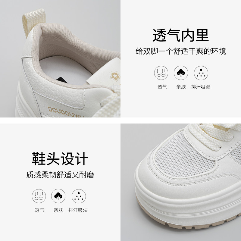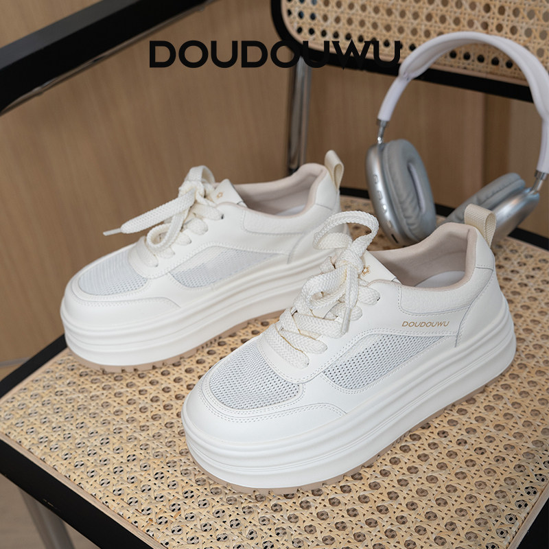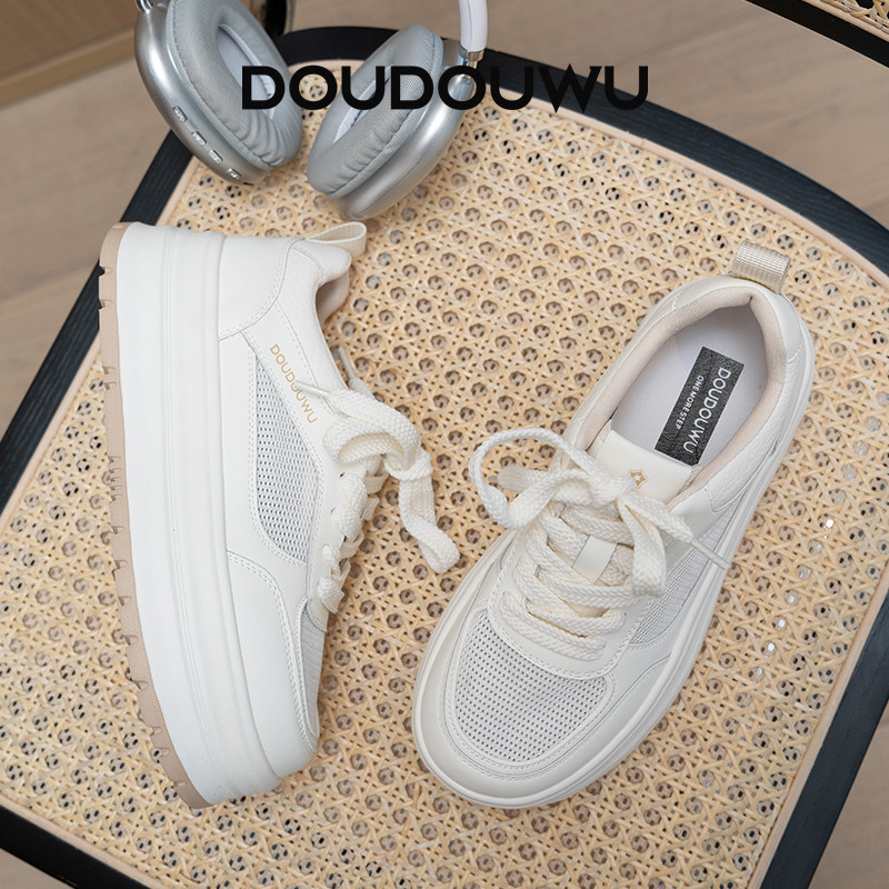 豆豆屋厚底小白鞋女网面透气2025夏季新款韩版潮休闲系带百搭女鞋
