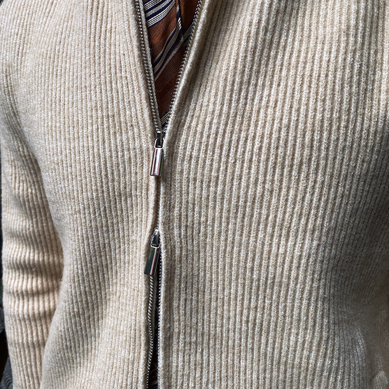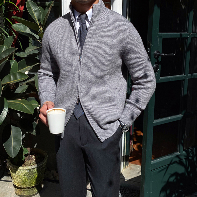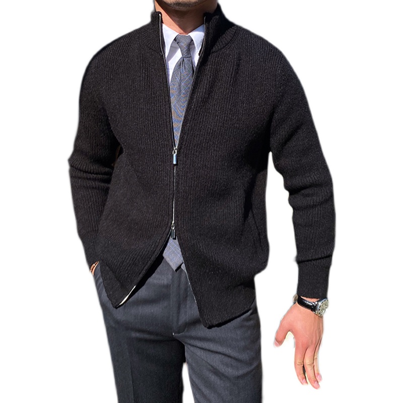 冬季新款韩版立领长袖休闲拉链开衫青年英伦日系保暖罗纹针织毛衣