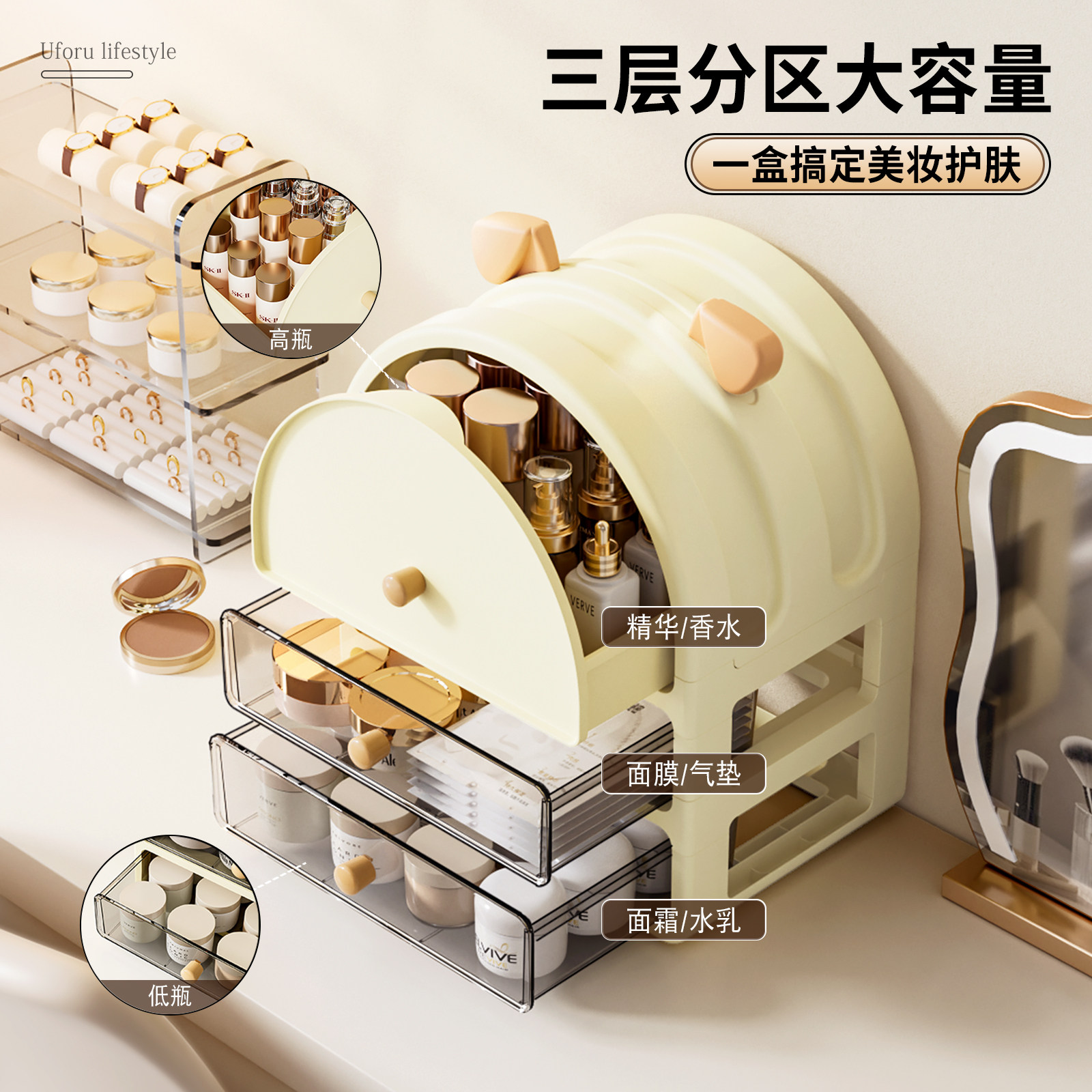 化妆品收纳盒桌面置物架高级感梳妆台放口红眼影网红新款化妆刷筒