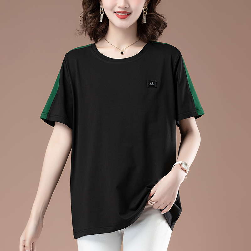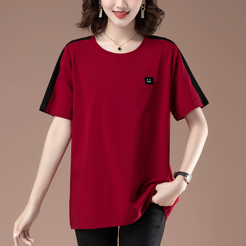 2025夏季新款宽松中年妈妈装短袖t恤女大码女装纯棉洋气减龄上衣