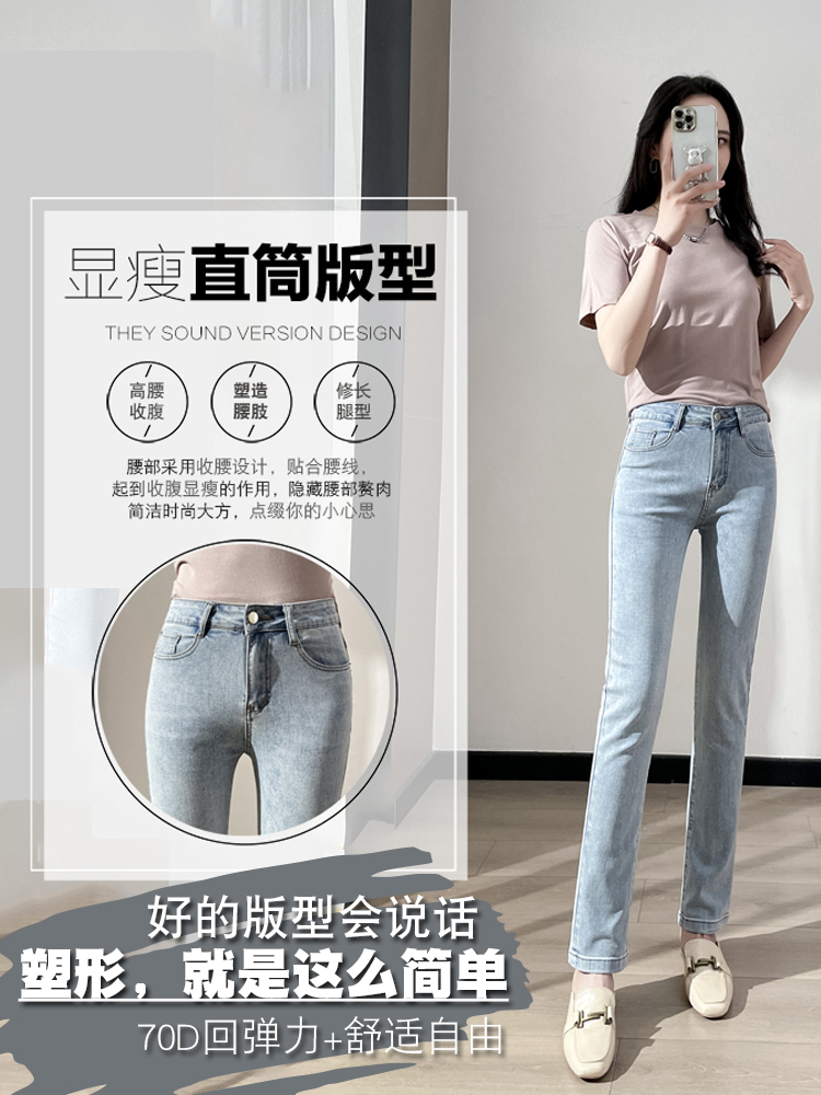哈魅小直筒牛仔裤女高腰长裤薄款
