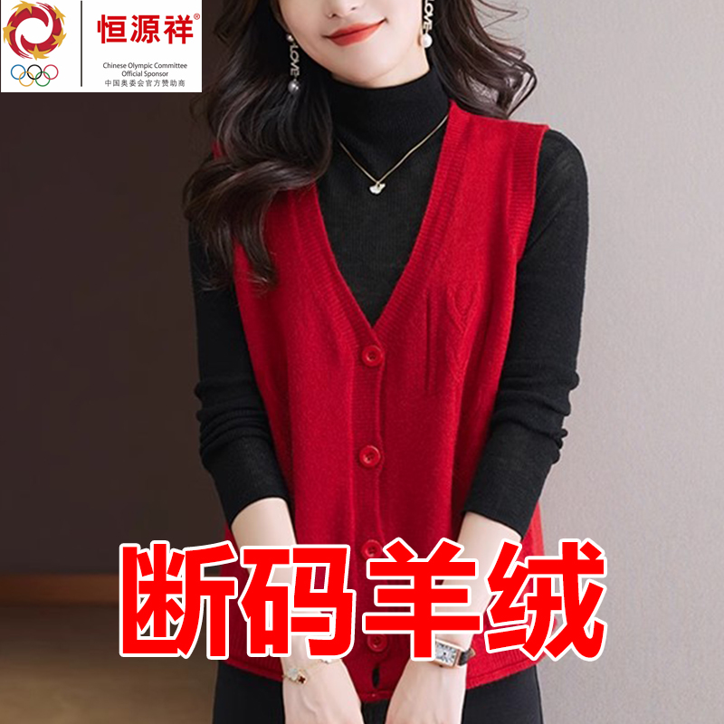恒源祥集团羊绒衫女秋冬新款时尚背心毛衣彩羊针织开衫马甲外搭薄