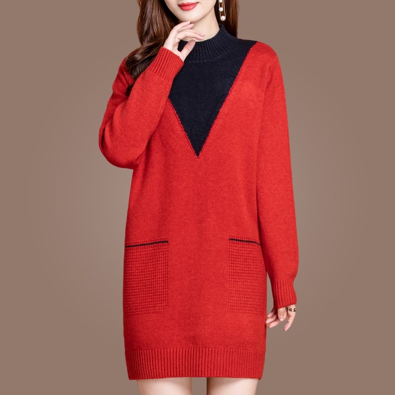 2024新品羊毛衫女宽松假两件中长款毛衣裙秋冬加肥加大码打底衫