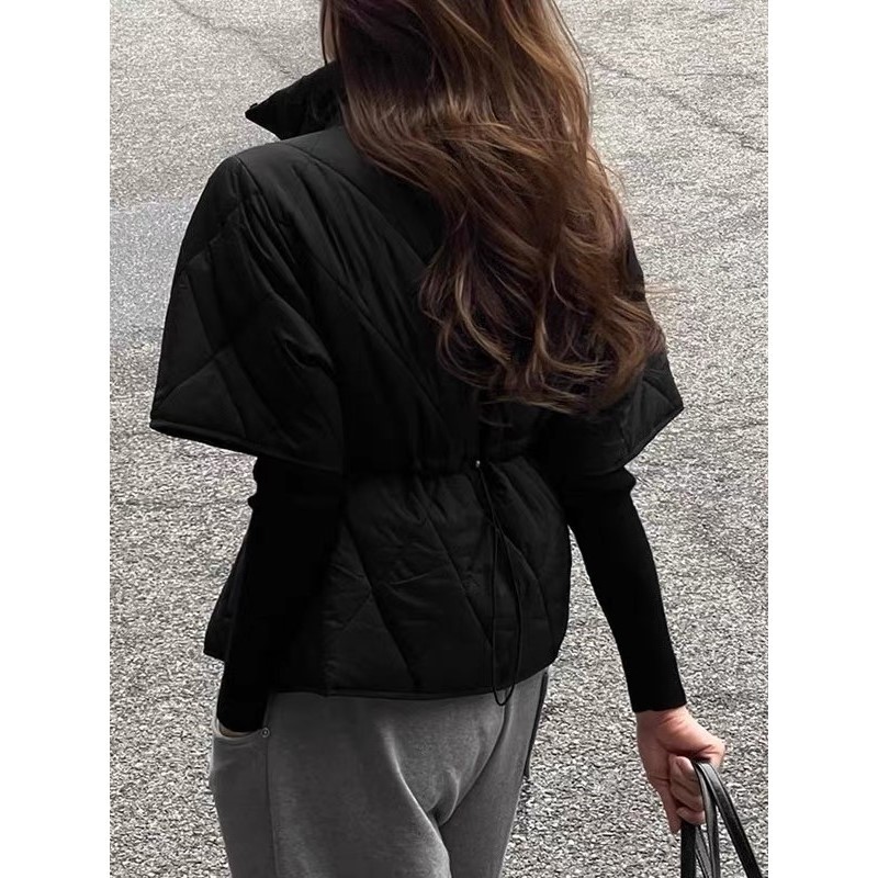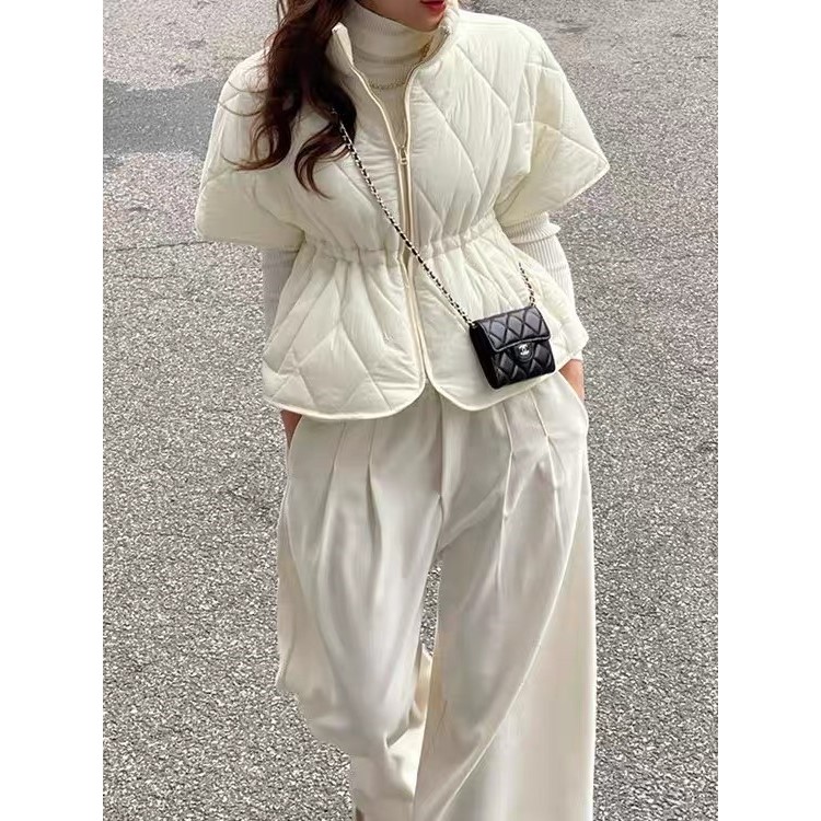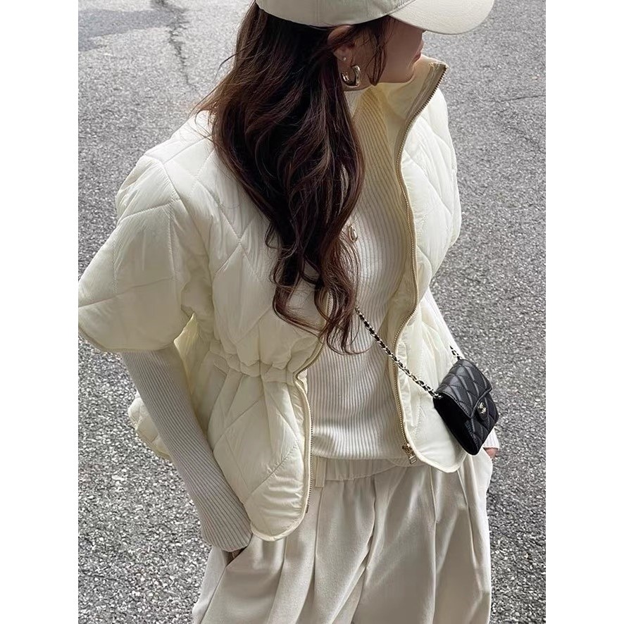 包邮 首尔印象韩代 25fw 温柔抽绳收腰坎肩中袖棉衣外套女冬新款