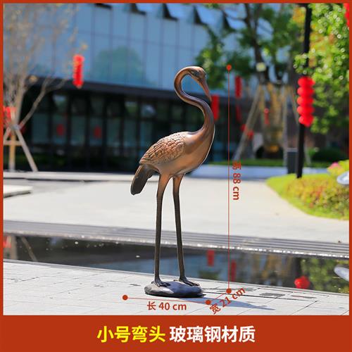 玻璃钢仿铜仙鹤摆件丹顶鹤雕塑假山动物工艺品户外园林景观装饰品