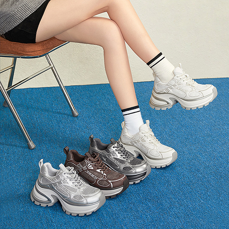骆驼星云老爹鞋2025秋冬厚底增高加绒银色运动鞋休闲徒步慢跑鞋女
