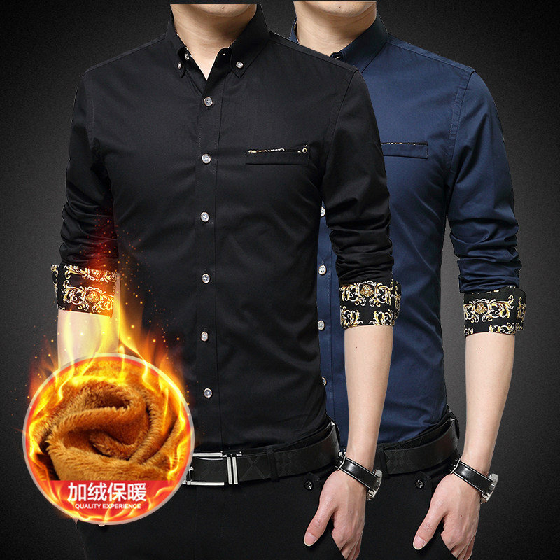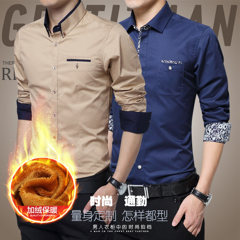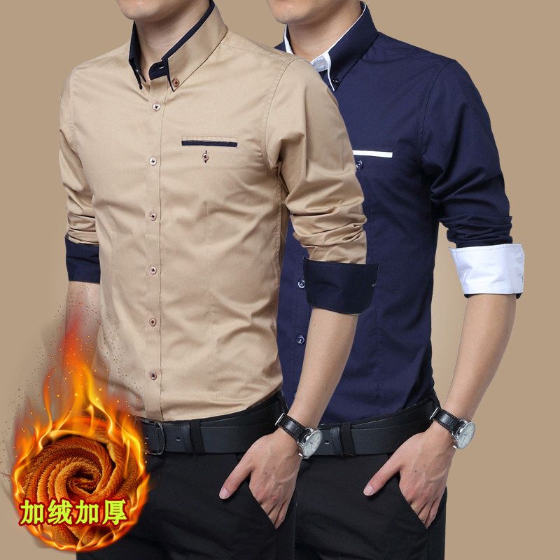 保暖加绒男士长袖衬衫商务休闲
