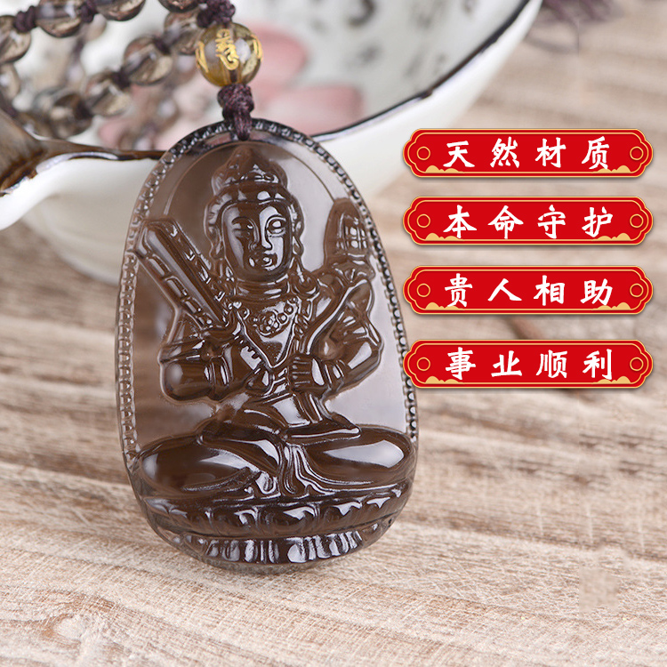 冰种黑曜石本命佛吊坠八大守护神十二生肖男女招财项链虚空藏属虎