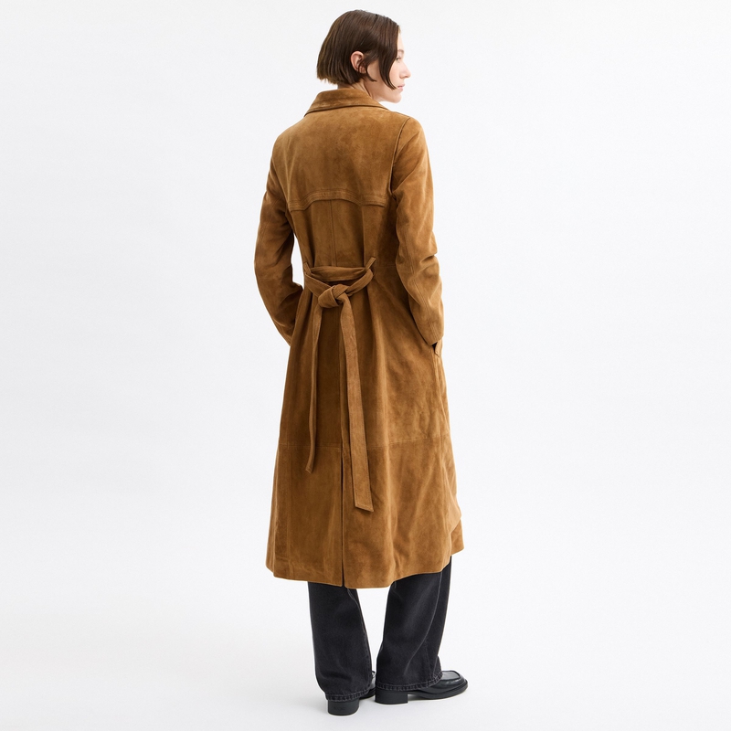 【新品】COACH/蔻驰女士绒面皮革风衣外套长袖上衣宽松高级感