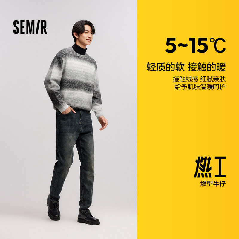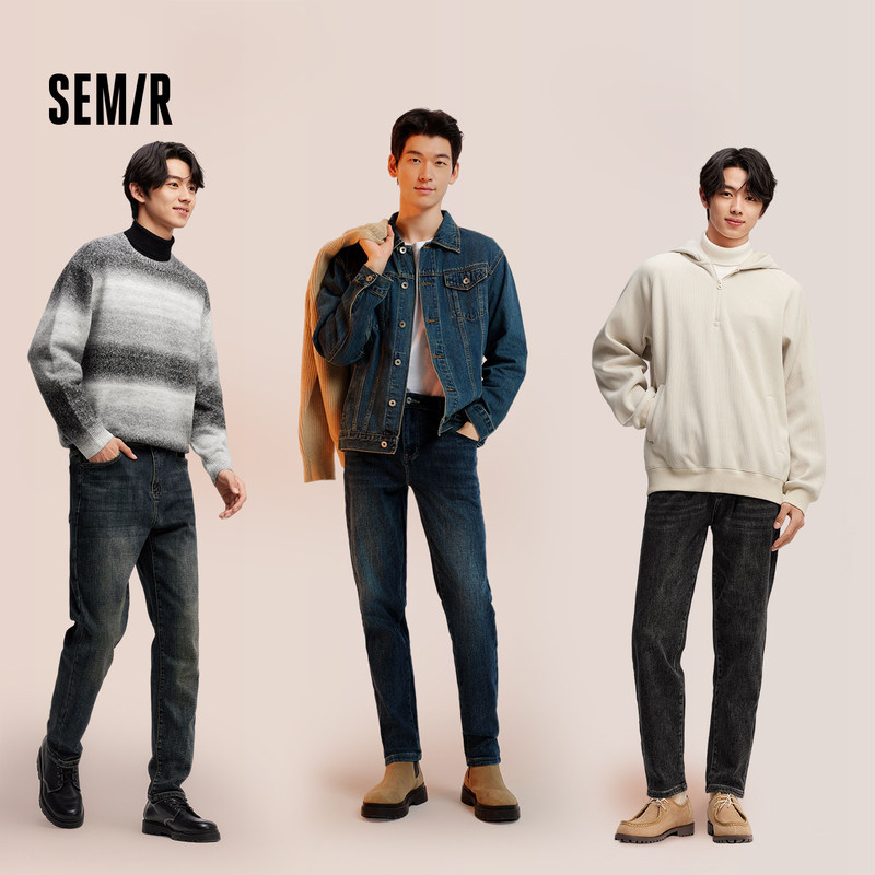 森马牛仔裤男款弹力磨毛小脚裤子通勤基础百搭冬季保暖长裤春秋款