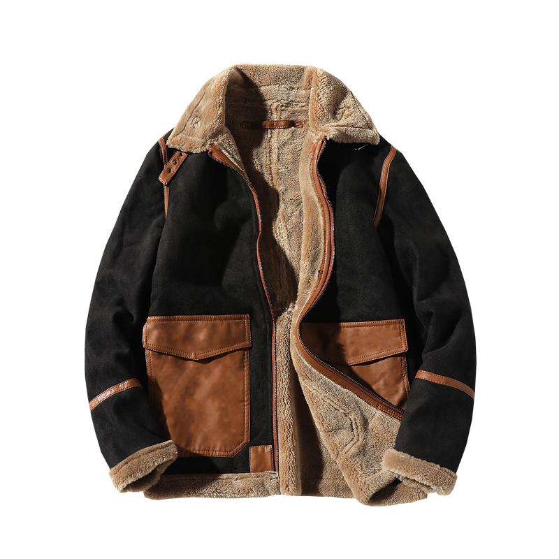 皮毛一体外套男韩版宽松加绒加厚羊羔毛领棉衣服休闲大码男士夹克