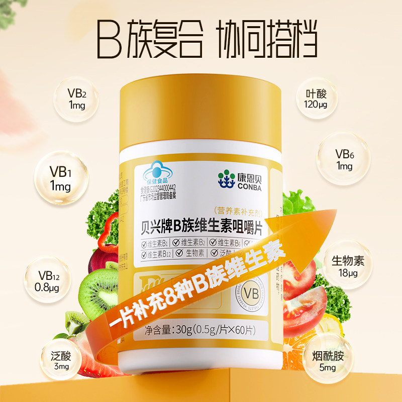 康恩贝复合维生素b族咀嚼片成人男士儿童b1b2b6b12官方旗舰店正品