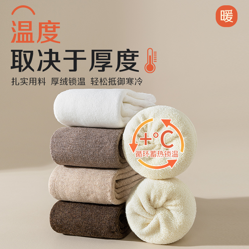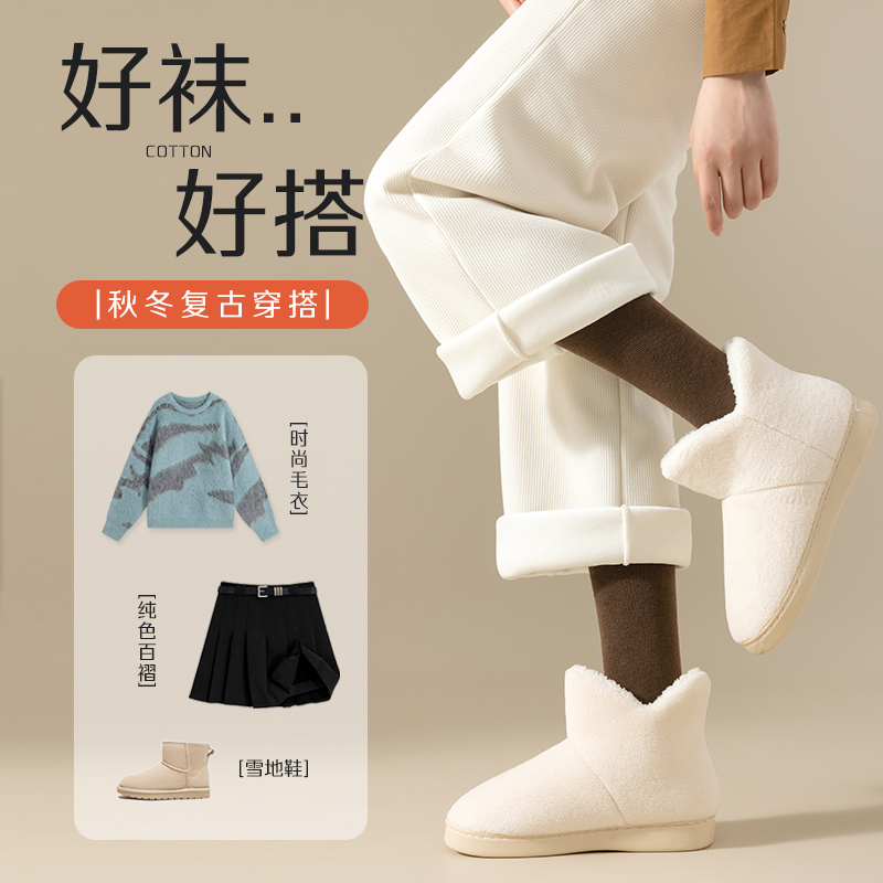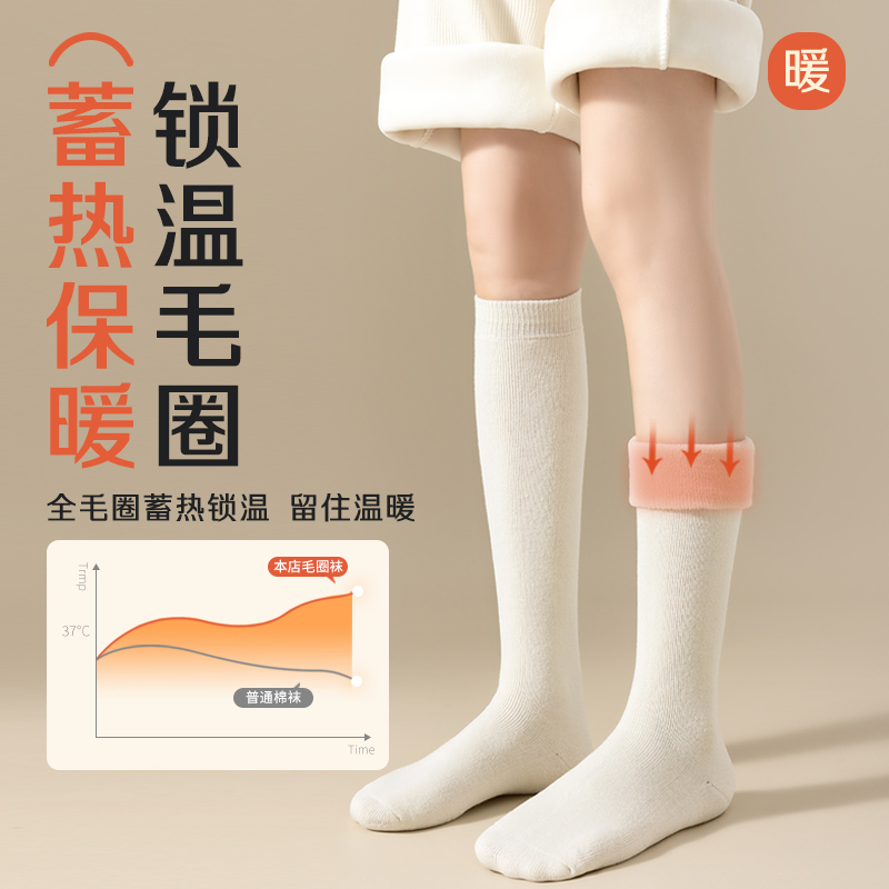 厚袜子女小腿袜秋冬季加绒加厚款毛圈袜保暖长筒袜冬天纯棉过膝袜