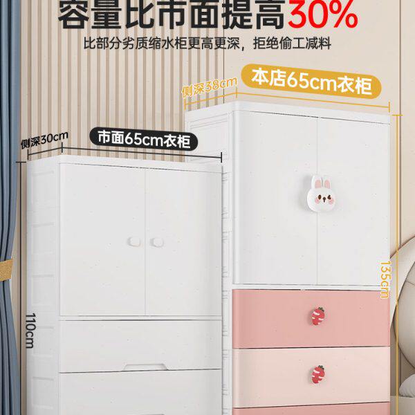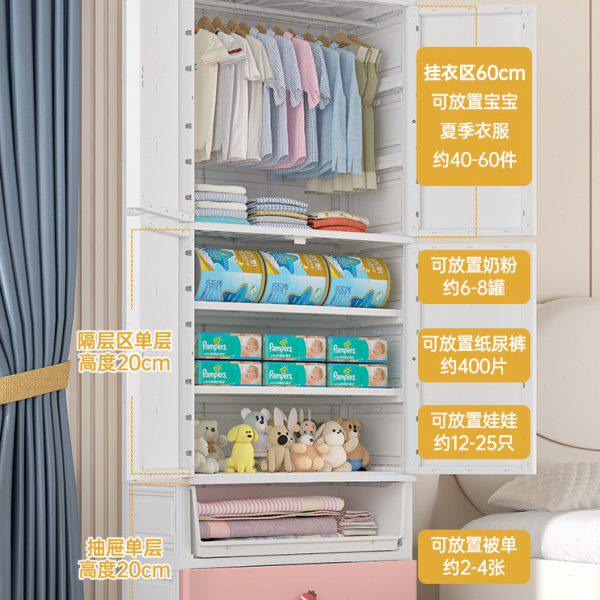简易衣柜家用可加厚卧室卡通儿童衣橱塑料挂衣收纳柜宝宝衣柜65宽