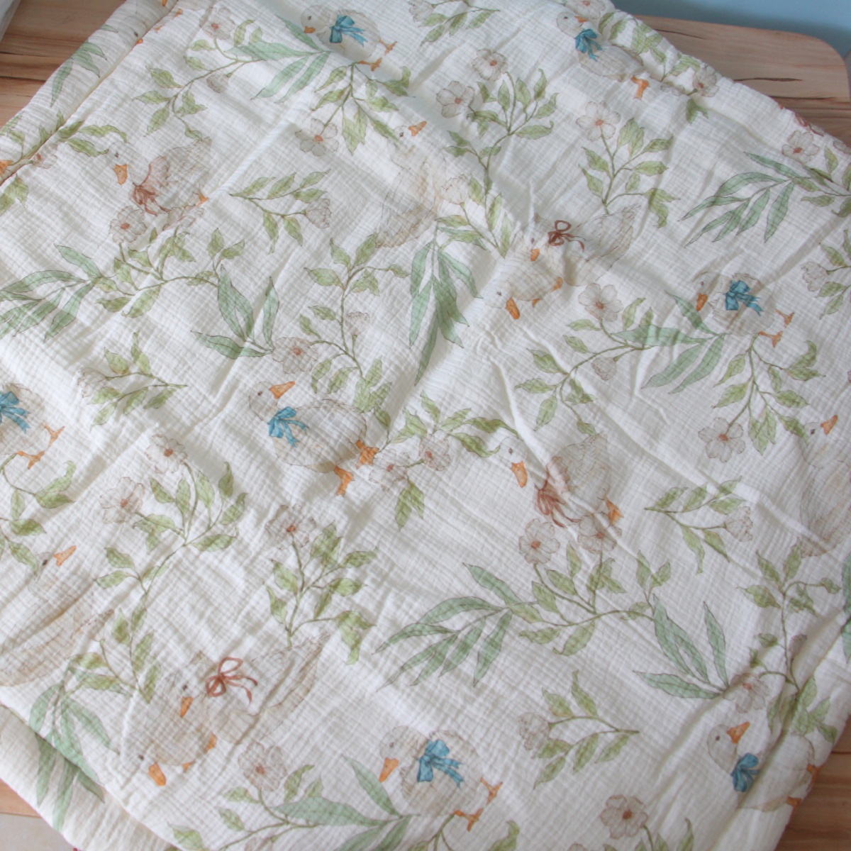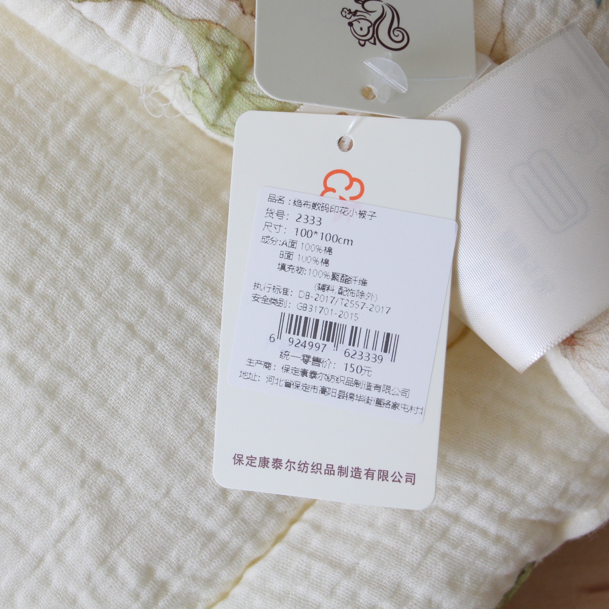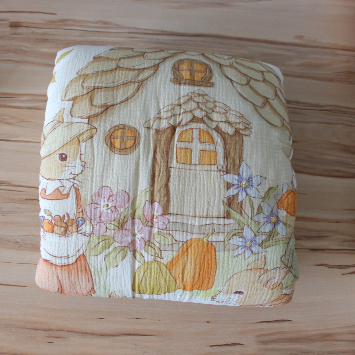 婴儿秋冬季加厚纯棉纱布被子新生儿抱被春秋儿童夹棉小方被幼儿园