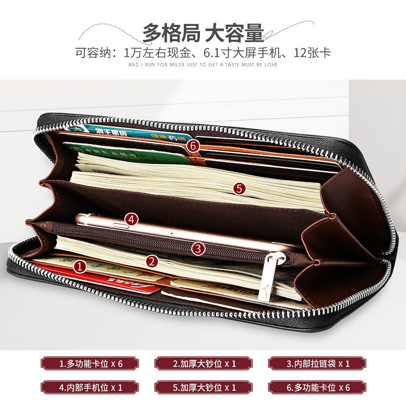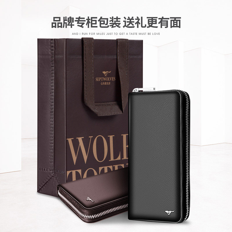七匹狼钱包男长款拉链手包生日礼物2026新款真皮手拿包简约手抓包