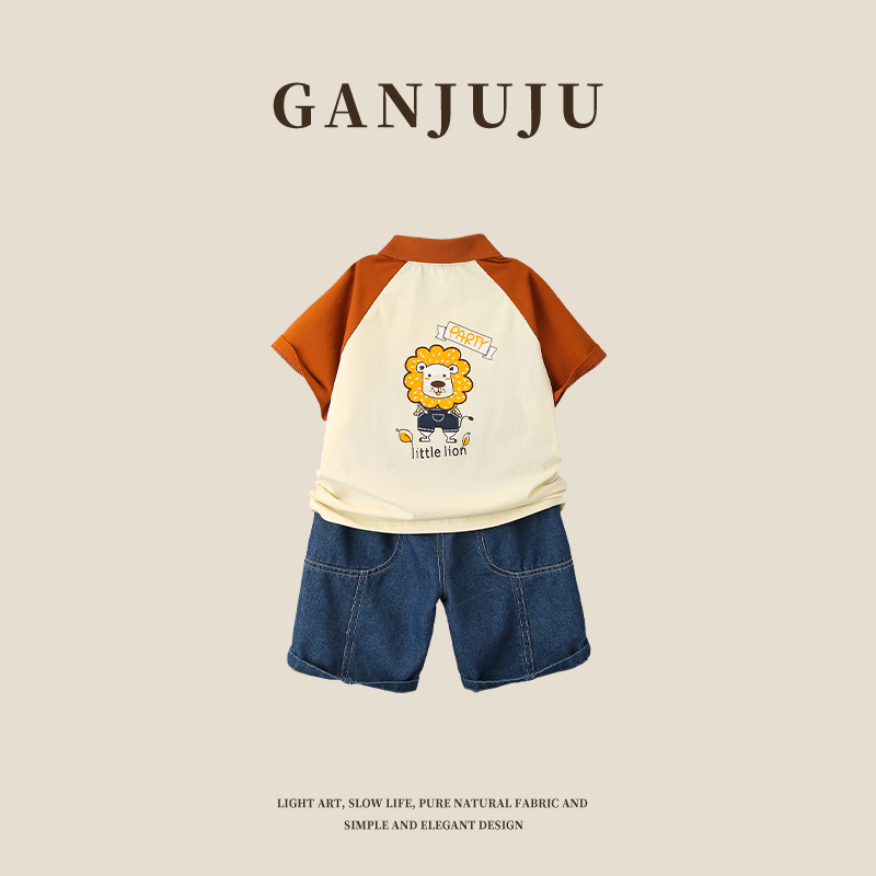 男童痞帅polo衫套装25新款儿童洋气时髦短袖男孩宝宝夏装炸街衣服
