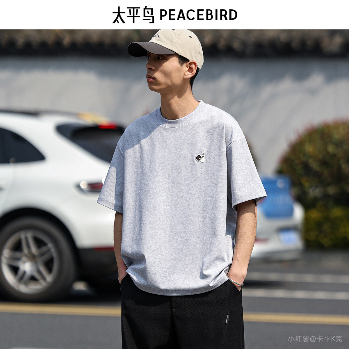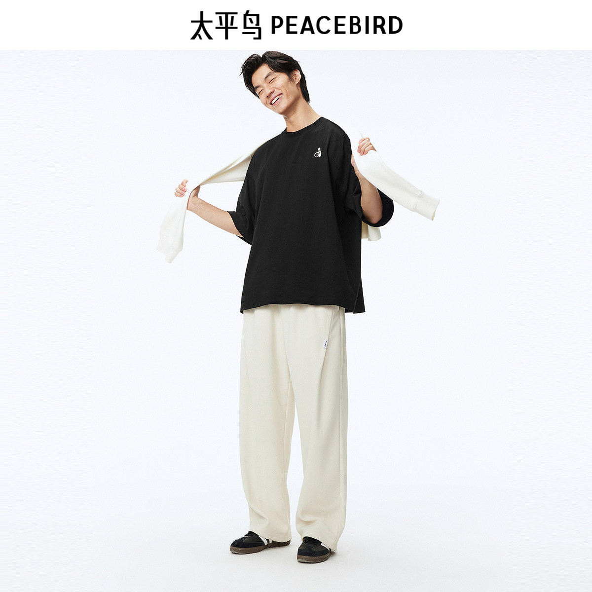 【凉感】太平鸟男装重磅短袖t恤25年夏新款宽松白色男生体恤潮