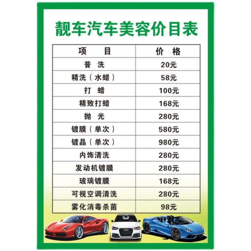 汽车美容洗车店价目表海报墙贴纸4S店汽修保养维修价格广告画定制