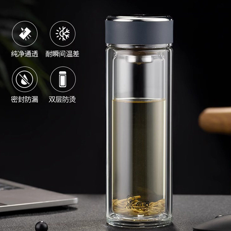 希诺玻璃杯双层隔热防烫高档商务泡水杯礼盒男士便携办公室泡茶杯