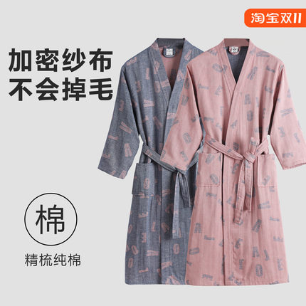 新款纯棉纱布浴袍女成人浴衣男士吸水可穿式浴巾四季洗澡睡衣睡袍