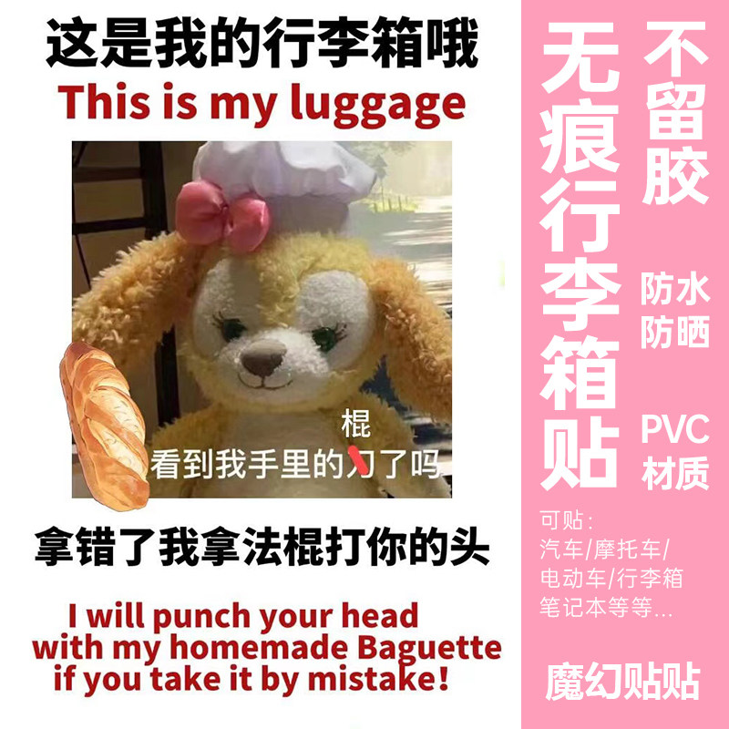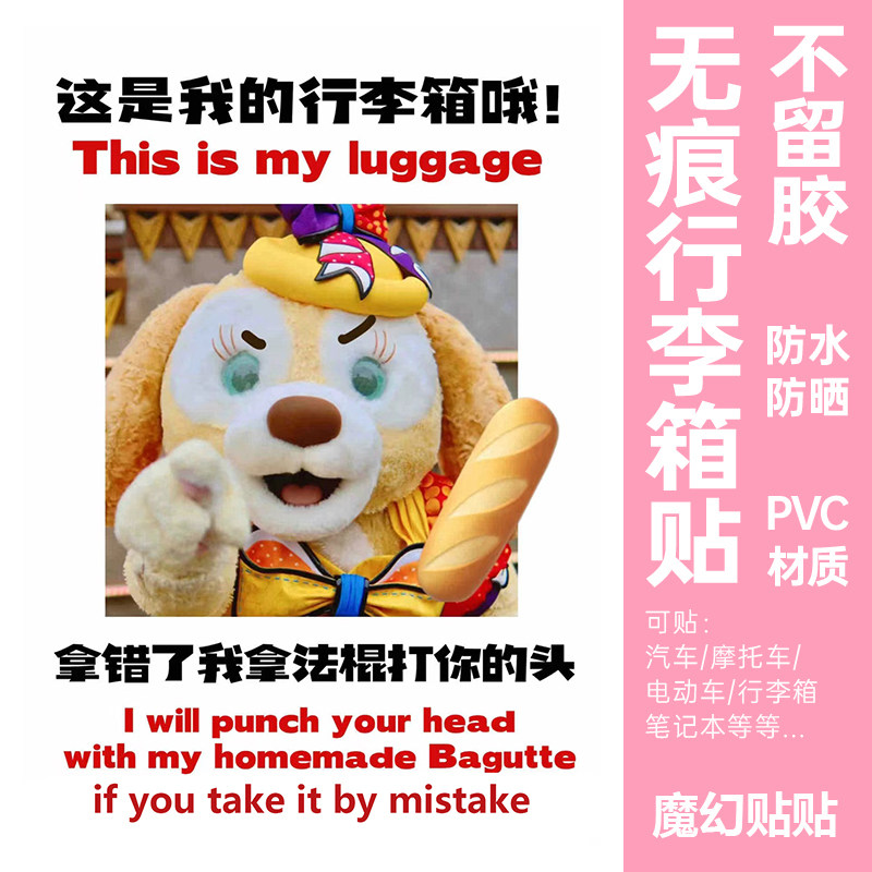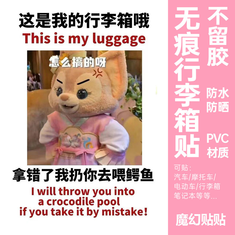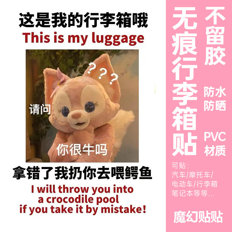 迪士尼饼饼行李箱贴纸防水不留胶大号旅行箱防丢防拿错标识牌贴纸