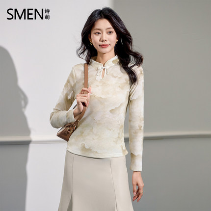 【商场同款】Smen诗萌新中式国风T恤盘扣设计感2026春新款上衣女