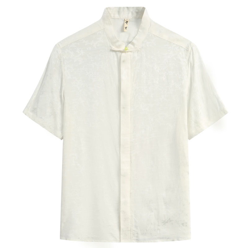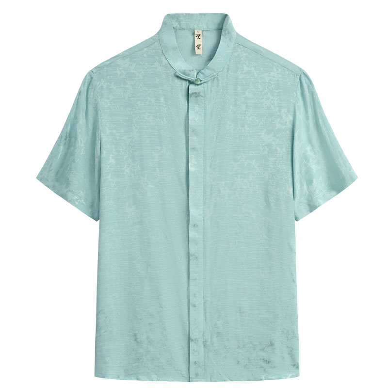 夏季短袖衬衫男改良唐装中国风宽松立领衬衣男国潮复古天丝上衣男