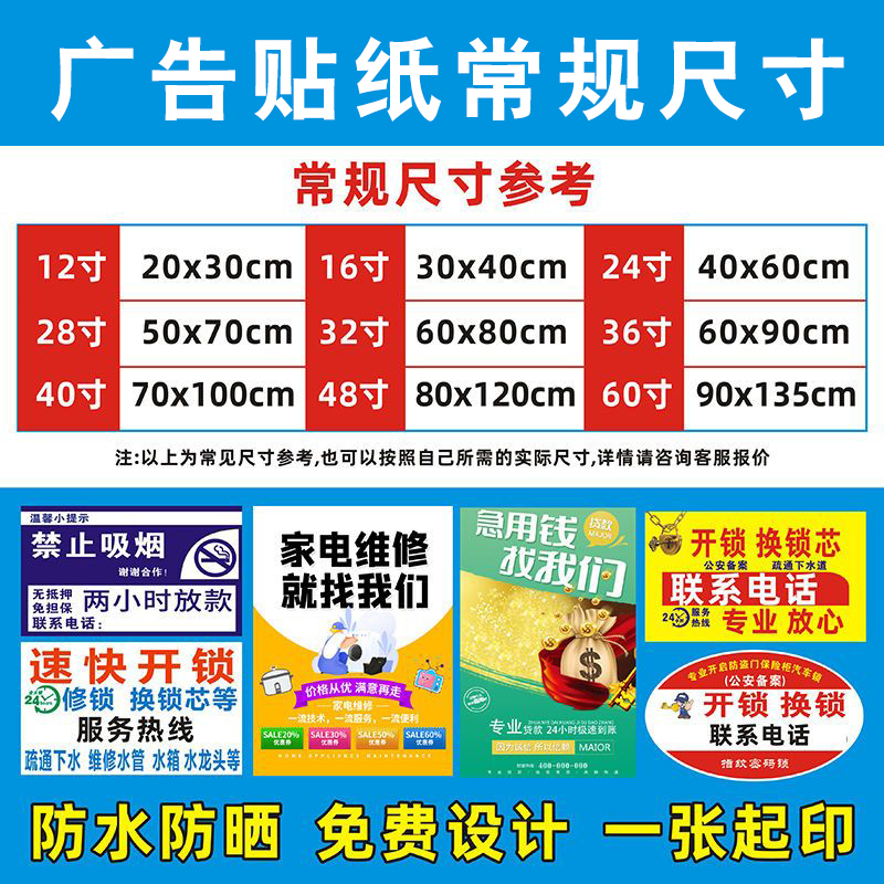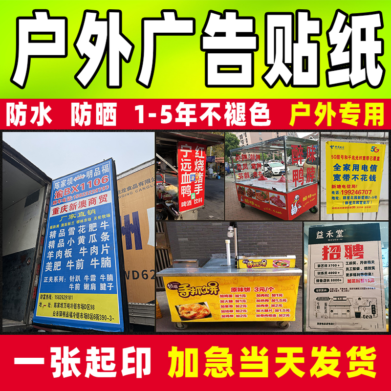 广告贴纸定制户外背胶海报制作打印设计不干胶自粘贴招牌车贴墙贴