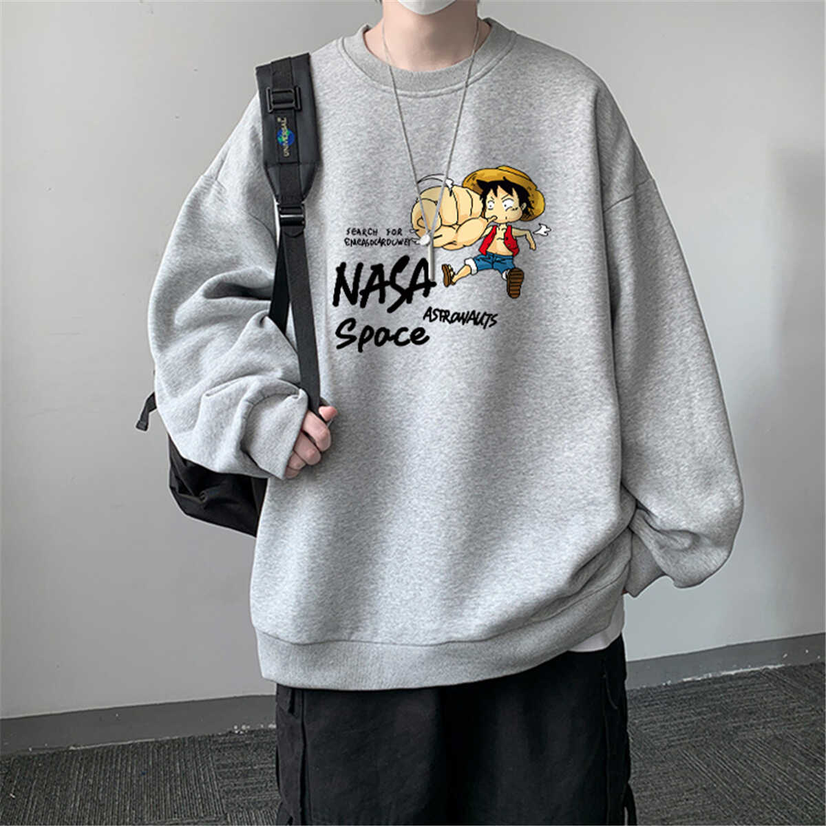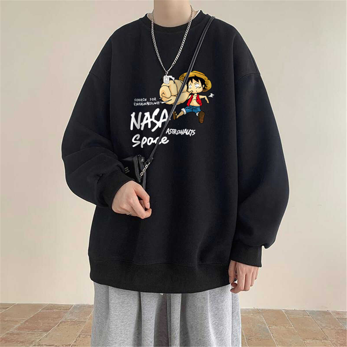 100%纯棉美式重磅秋冬新款加绒加厚青少年卫衣男圆领套头卡通上衣