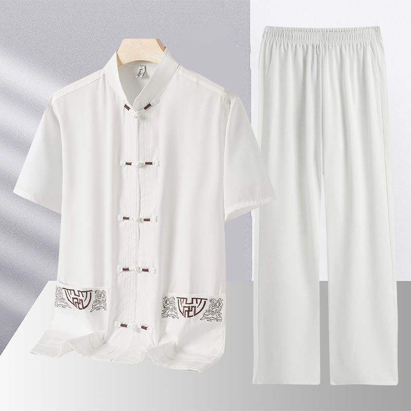 唐装男休闲短袖爸爸套装夏季中老年人宽松汉服中国风爷爷装上衣服