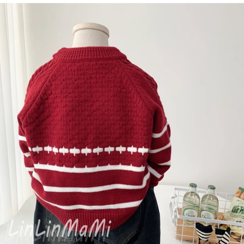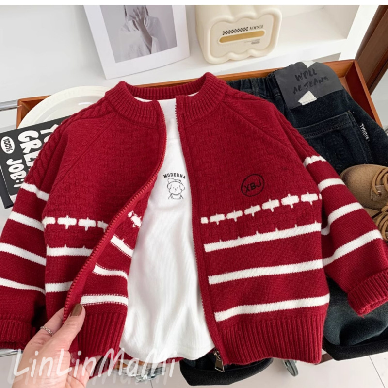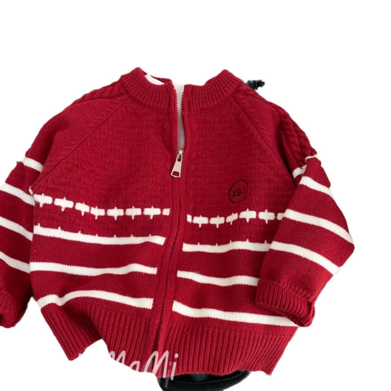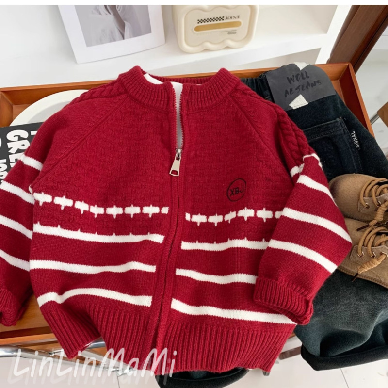 男童毛衣开衫洋气红色拜年服2024新款中小儿童时尚针织拉链开衫