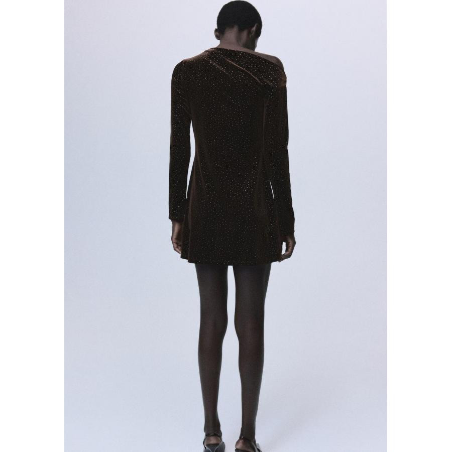西班牙欧洲正品代购 MANGO 女士 亮片不对称天鹅绒连衣裙17049111