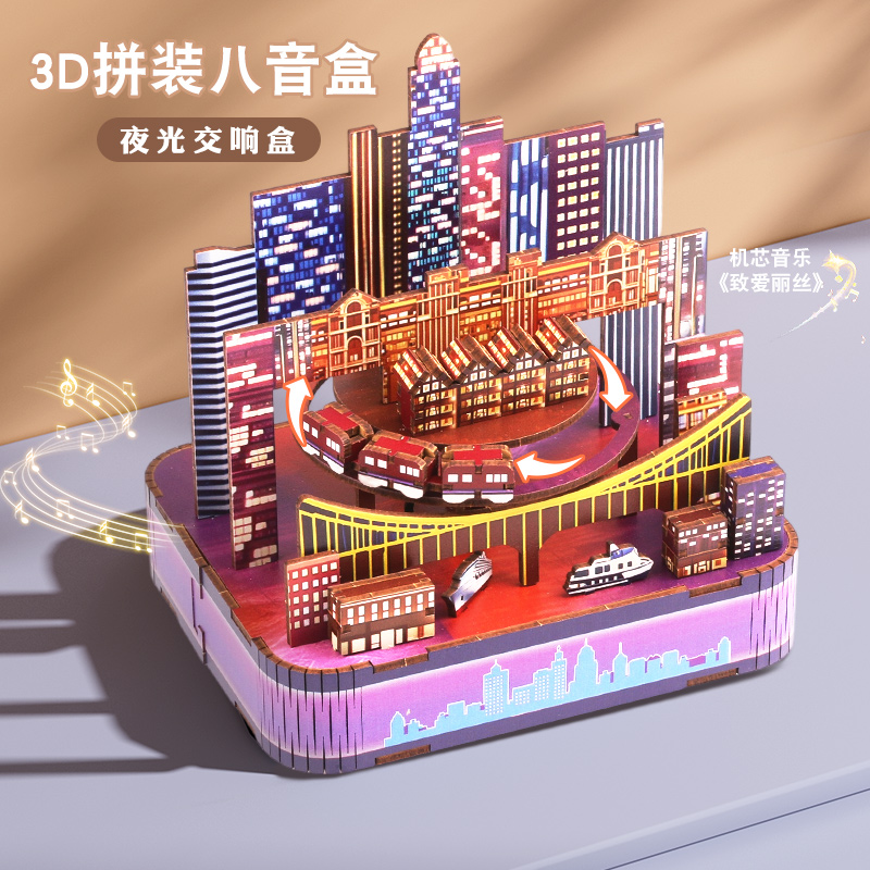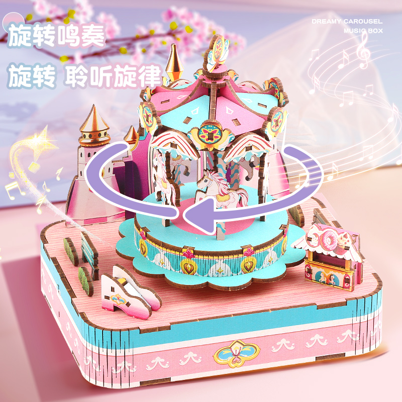 八音盒diy手工立体拼图可旋转拼装积木模型音乐盒男女孩生日礼物