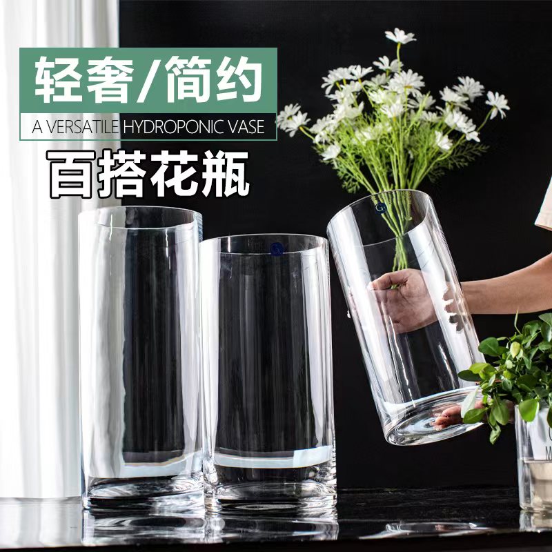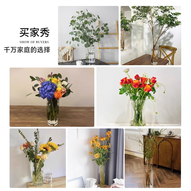 雪柳花瓶插花摆件马醉木水培植物干枝富贵竹龙柳专用透明玻璃瓶