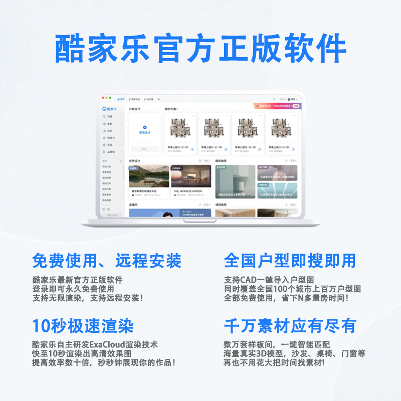 酷家乐软件教程室内装修设计效果图渲染视频课程模型库远程安装